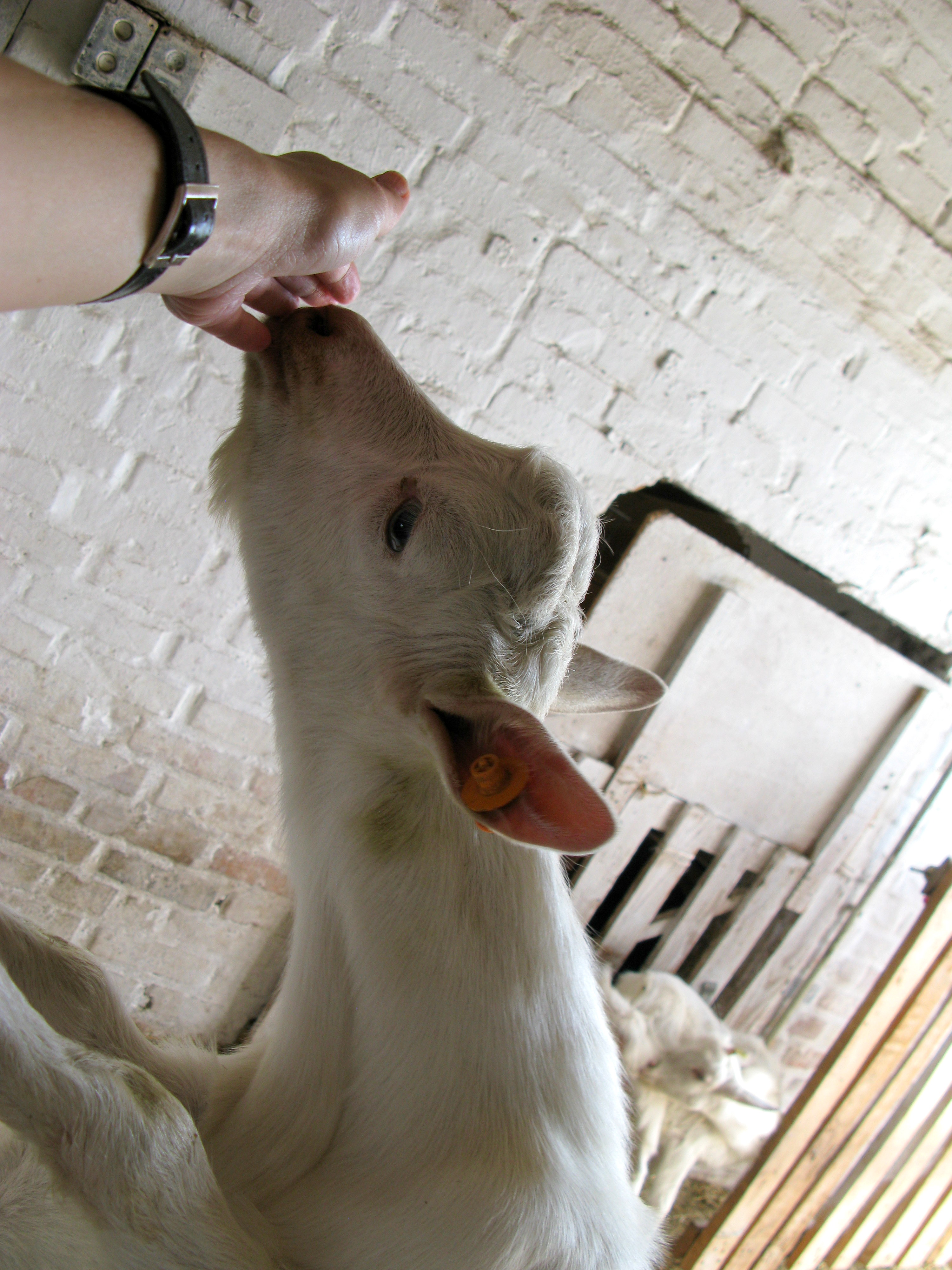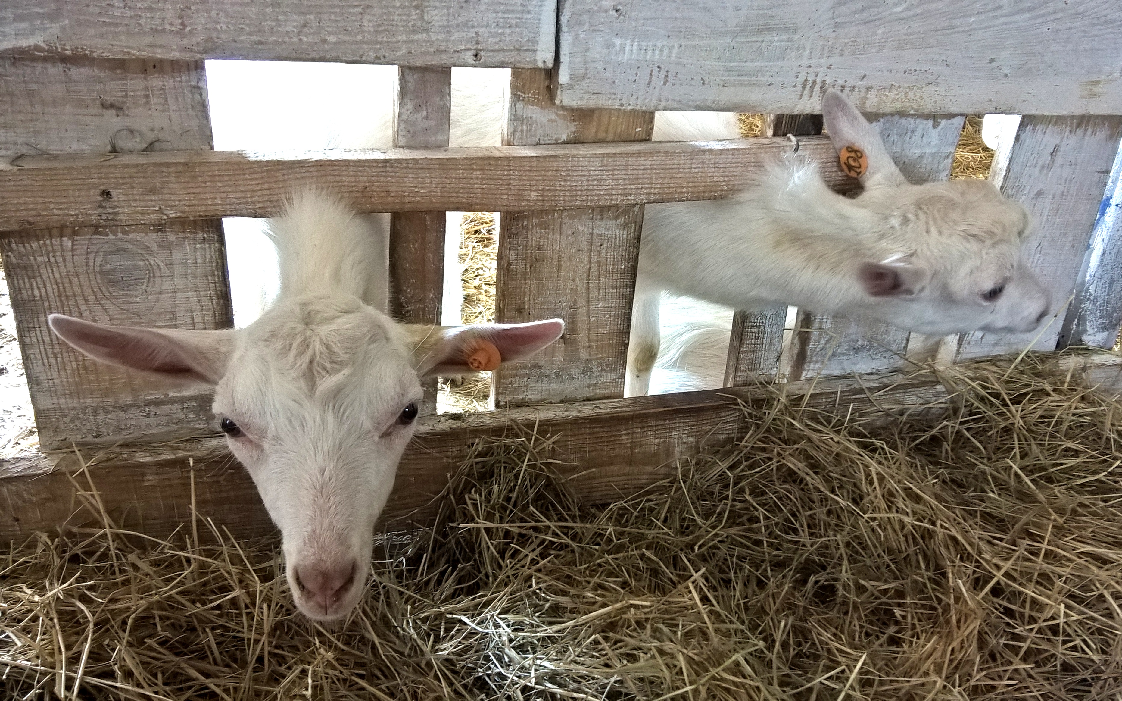 Я так хотела все успеть, что оказалась на Доооброй Ферме уже в 9 утра, даже раньше назначенного времени, и первыми, кого я встретила, были эти чудесные, ласковые козлики 🙂