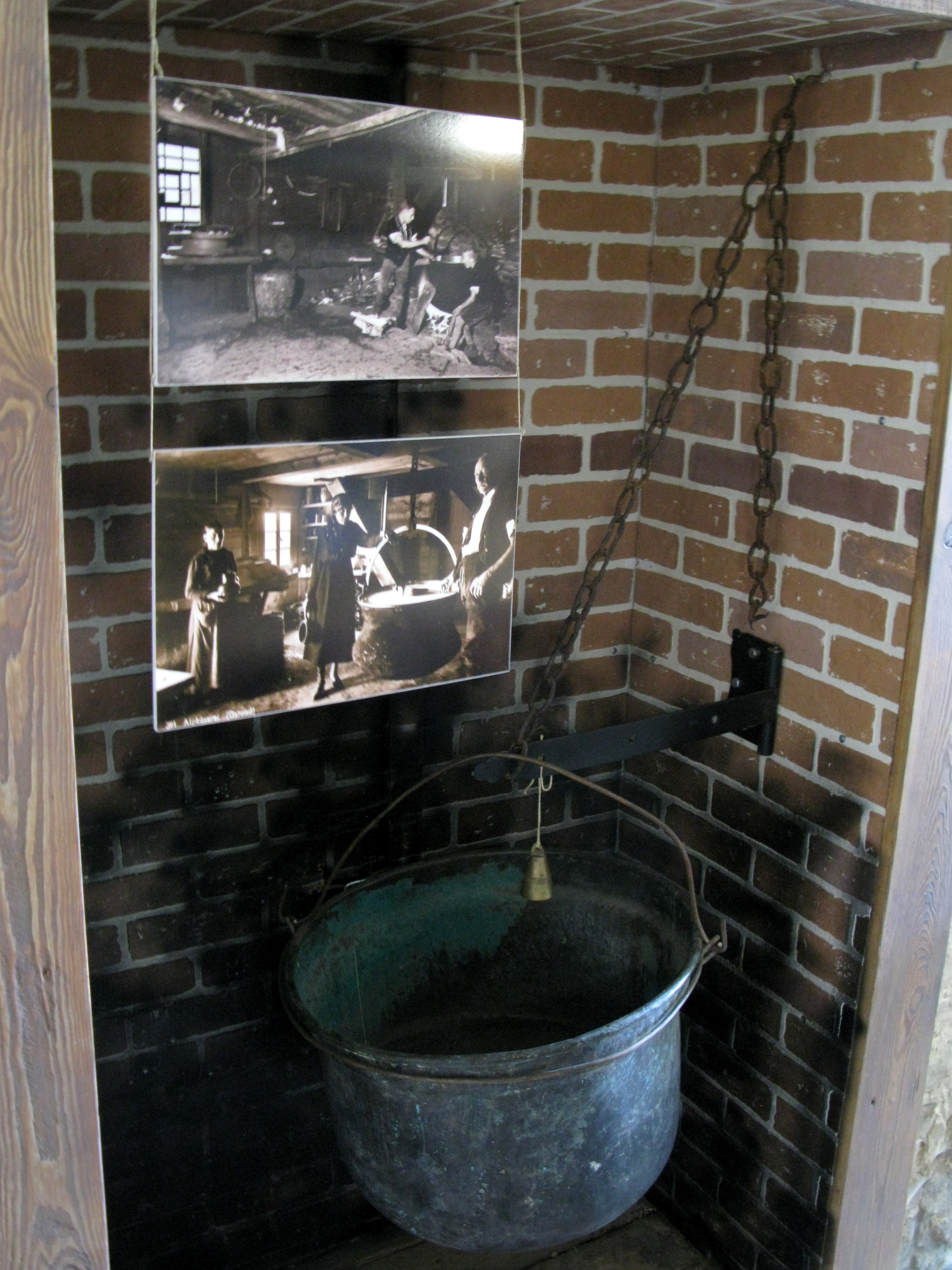 …старинный котел (а вот эта выемка в стене заслуживает особого внимания!),..