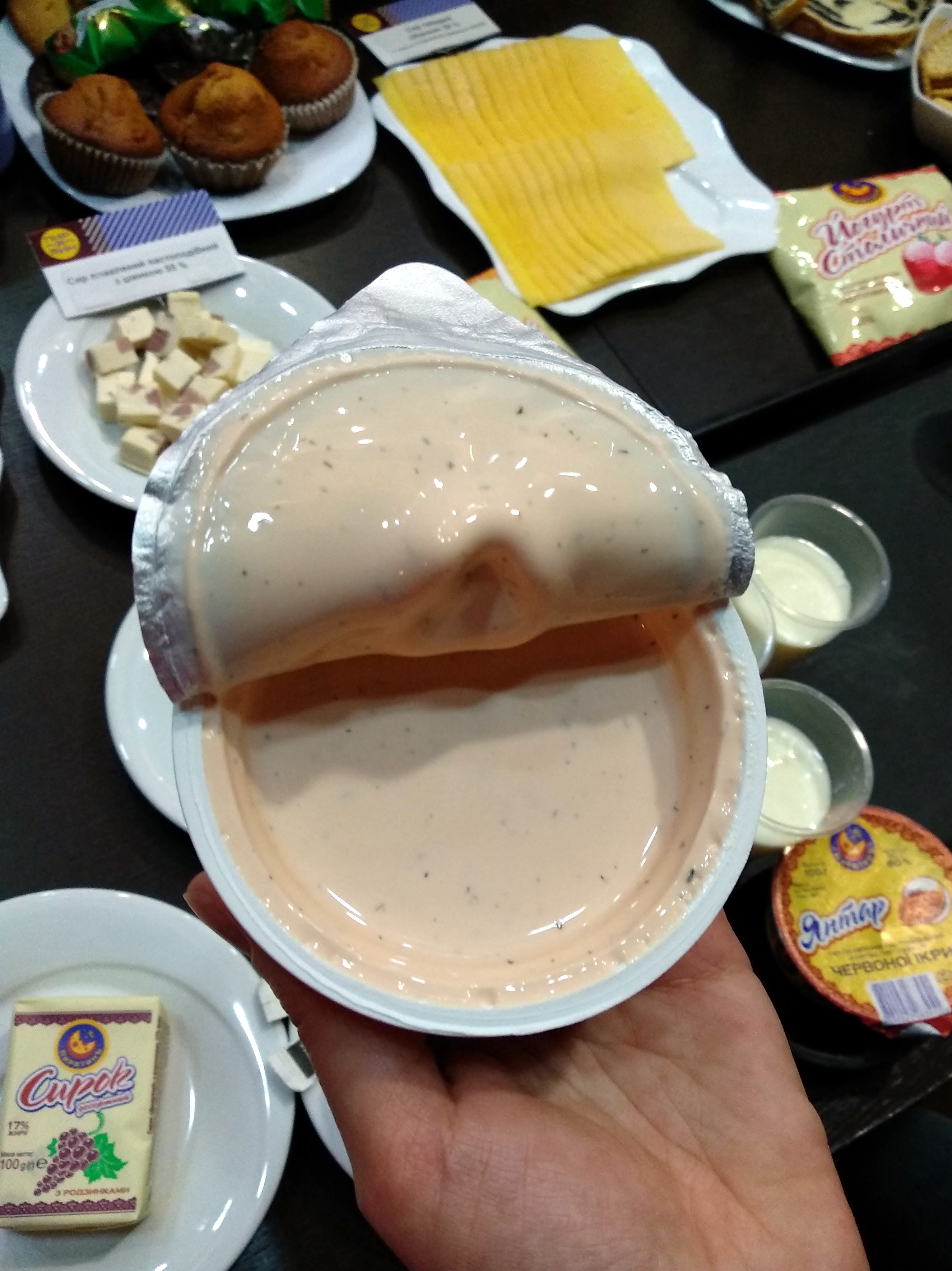 Что же до консистенции, то, по словам Татьяны Нечитайло, плавленый сыр должен быть пастоподобным, но до какой степени – решает сам производитель. Возможно, именно поэтому у каждого – свой неповторимый «Янтарь», изначально разработанный по заданию партии дабы перещеголять иностранные аналоги. Было это полстолетия тому назад, а сейчас, чего только не встретишь на прилавках – французские Kiri и La vache qui rit, она же – «Веселая коровка», ни много ни мало – одна из первых торговых марок промышленных сыров в Европе, деликатесный Rambol, финская Viola, десятки украинских брендов. Но если бы у меня спросили, каким должен быть плавленый сыр, то только такой, как пирятинский – в несуразной громоздкой тубе. На дегустации я даже не пыталась его попробовать, чувствуя некоторую неловкость, что придется вонзить ложку в хирургически сделанный разрез на пленке.