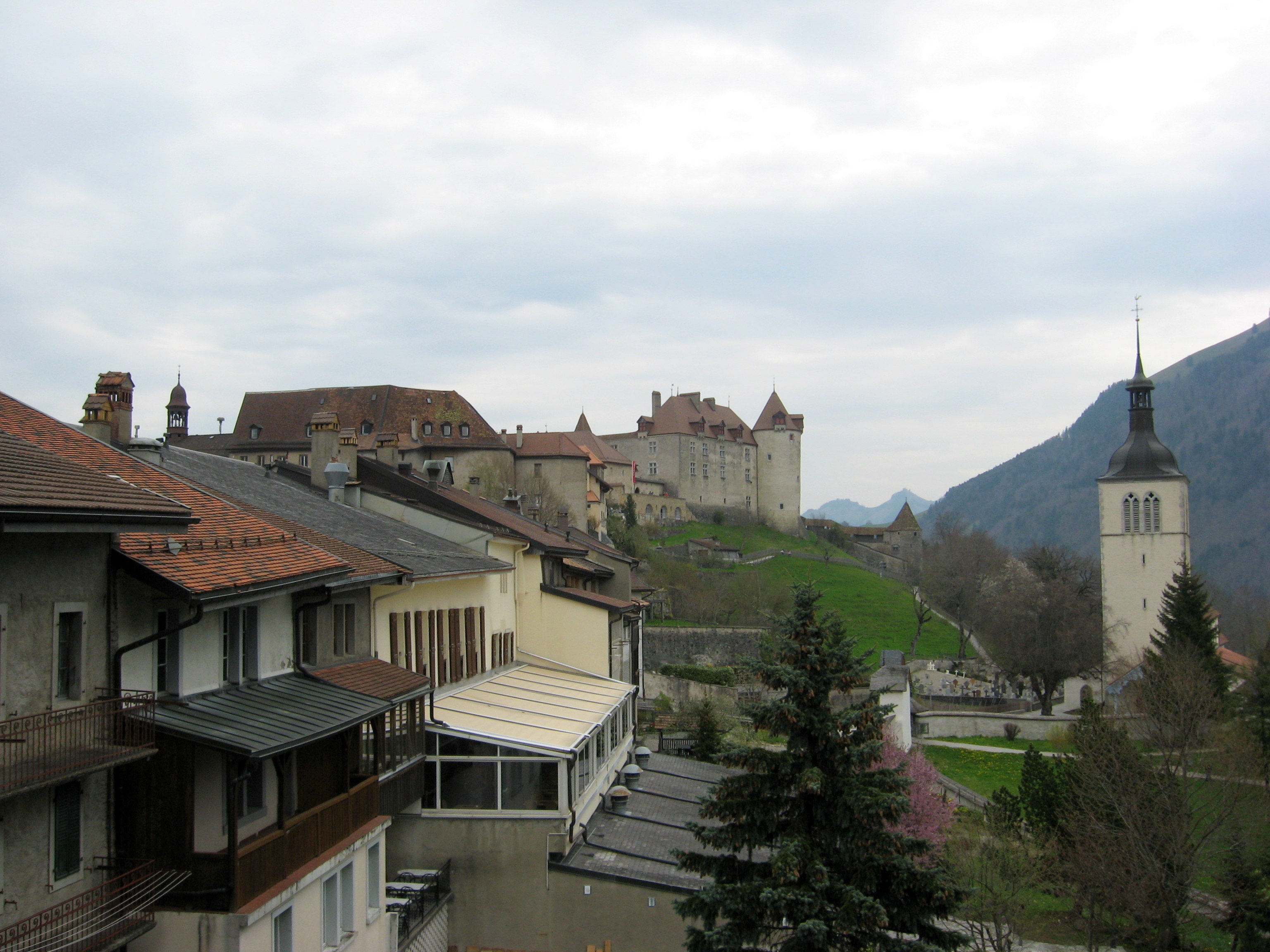 Экскурсия по средневековому Грюйеру с организованной группой продлится не больше часа. Главная цель всех посетителей – местный замок на возвышении, с которого открывается волшебный вид на окруженную аккуратными могилками церковь Святого Теодора, прекрасные горы и сияющие зеленью лужайки. Грюйерский замок – второй по популярности в Швейцарии после Шильонского, и если приехать в город самостоятельно, можно не спешить за экскурсоводом и остаться здесь подольше – прогуляться по залам и рассмотреть их интерьеры, посидеть на древних каменных лавках, попытаться измерить толщину стен, поскрипеть половицами и вглядеться в суровый портрет над камином, а затем пойти в местный музей. Или устроится за столиком в одном из множества ресторанчиков и заказать классическое фондю Moitié-Moitié, для приготовления которого поровну берут Грюйер и Вашрен Фрибуржуа, или раклет, а к ним – дополнительную порцию картофеля и пикулей.