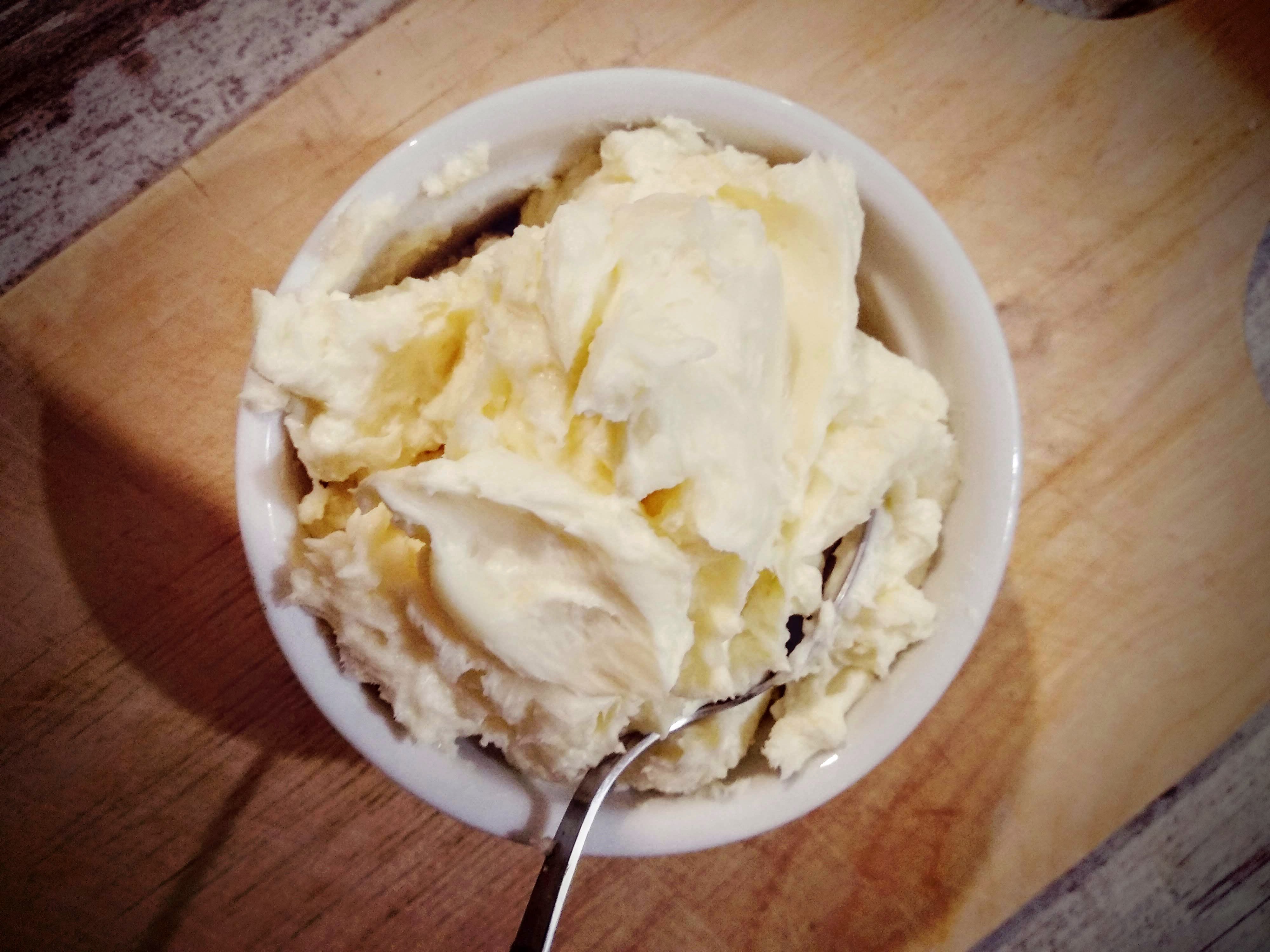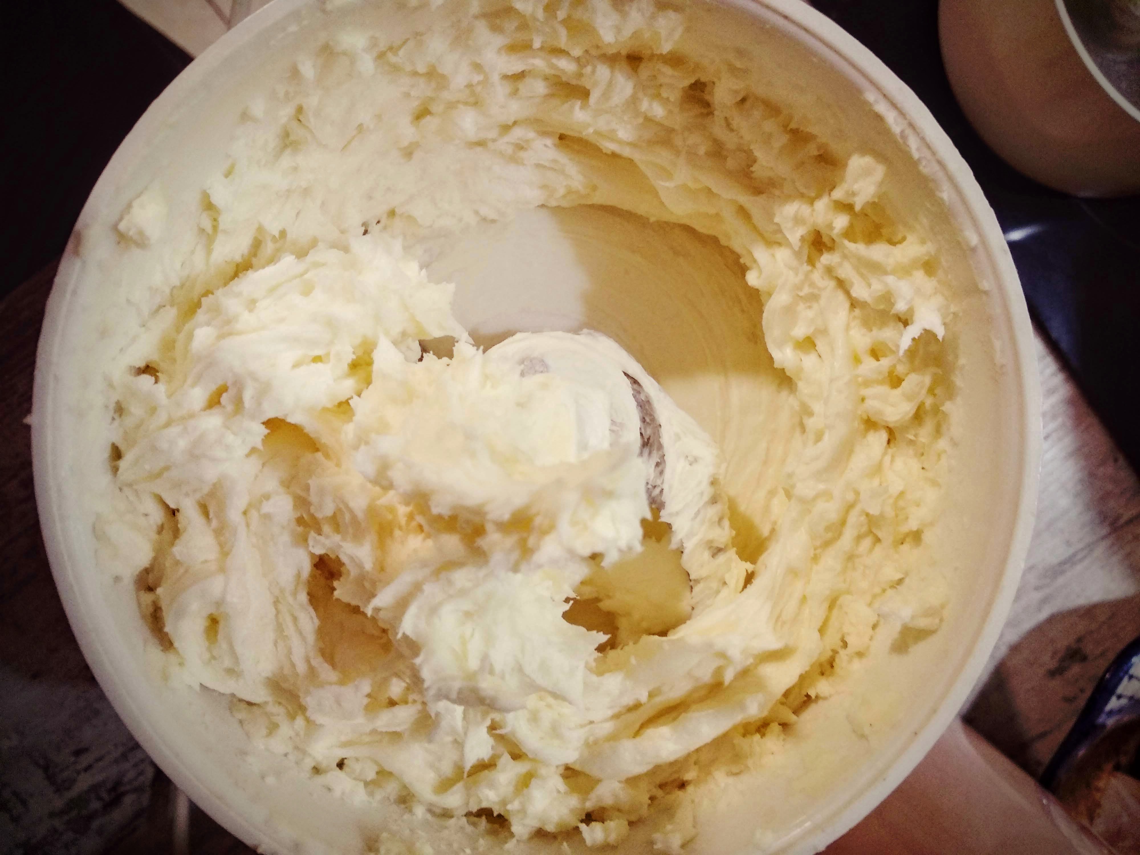 3. Взбиваем масло и сыр, чтобы получилась немного неоднородная масса, в конце взбивания добавляем щепотку каменной соли.