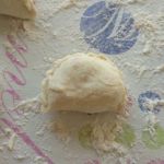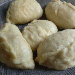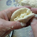 Відокремити від тіста частину, скачати в джгут і нарізати на рівні частини. Руками формувати з тіста кружальця, укладати в центр начинку (2 чайні ложки) і заліплювати.