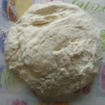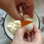 Накрити тісто рушником і залишити відпочити, тим часом додати до сиру яйце і трохи солі, перемішати.
